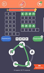 Цель игры - найти все загаданные слова. Благодаря этой игре вы легко увеличите свой словарный запас, улучшите навыки правописания и концентрацию. В этой игре вам необходимо искать слова и составлять их из заданных букв. С каждым уровнем сложность будет возрастать - игра в слова не даст вам заскучать.