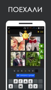 Логика игры заключается в том чтобы угадать ответ: тебе показывается 4 рисунка, которые скрывают одно слово. Игра подходит для любителей загадок, головоломок.