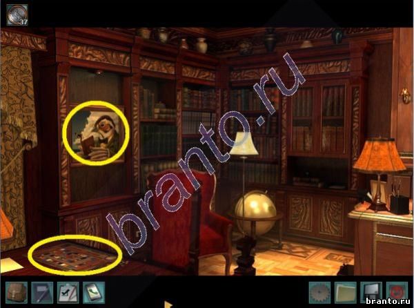 Верните книгу на место и возьмите со стола контрольный ключ, похожий на вилку с тремя штекерами.