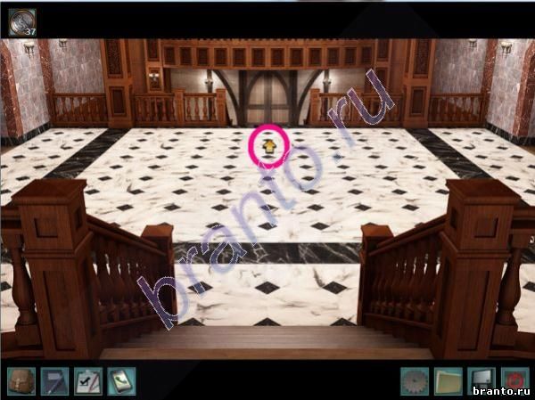 Если не сделали этого раньше, то возьмите со стола монету (показана на скриншоте в начале прохождения) и двигайтесь через ближайшую дверь в коридор с красной ковровой дорожкой.