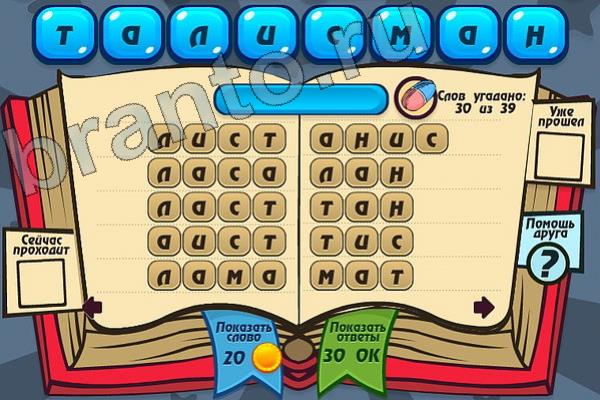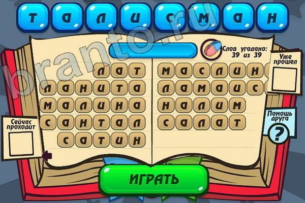 Какие 39 слов можно составить из слова "ТАЛИСМАН"? Мастер слова: ответ на Уровень 101