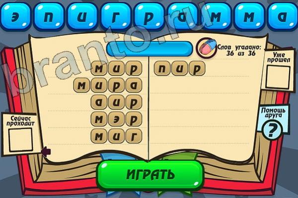 Какие 36 слов можно составить из слова "ЭПИГРАММА"? Мастер слова: ответ на Уровень 106