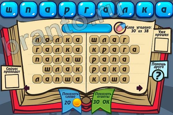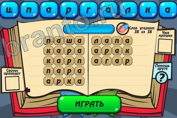 Какие 38 слов можно составить из слова "ШПАРГАЛКА"? Мастер слова: ответ на Уровень 107