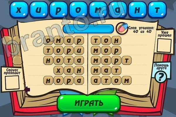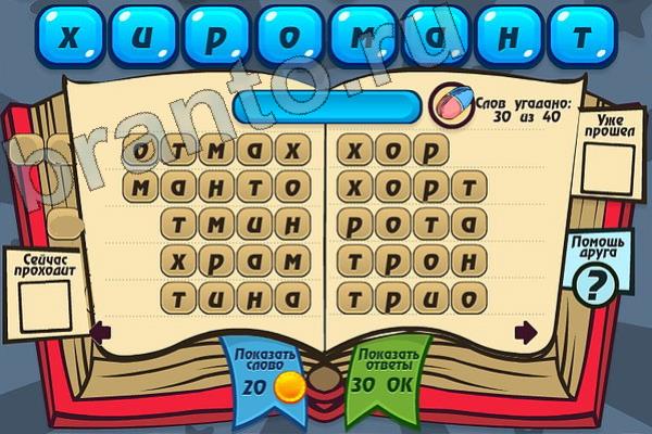 Какие 40 слов можно составить из слова "ХИРОМАНТ"? Мастер слова: ответ на Уровень 110