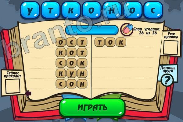 Какие 26 слов можно составить из слова "УТКОНОС"? Мастер слова: ответ на Уровень 112