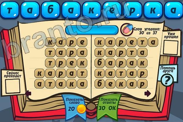 Какие 37 слов можно составить из слова "ТАБАКЕРКА"? Мастер слова: ответ на Уровень 113