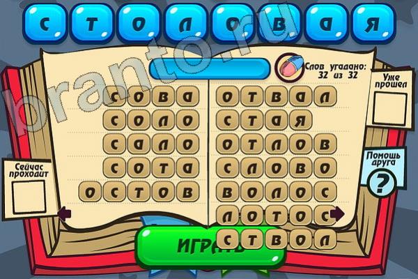 Какие 32 слова можно составить из слова "СТОЛОВАЯ"? Мастер слова: ответ на Уровень 114