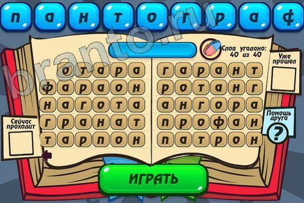 Какие 40 слов можно составить из слова "ПАНТОГРАФ"? Мастер слова: ответ на Уровень 116