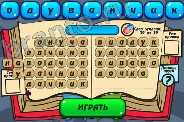 Какие 39 слов можно составить из слова "ОДУВАНЧИК"? Мастер слова: ответ на Уровень 117