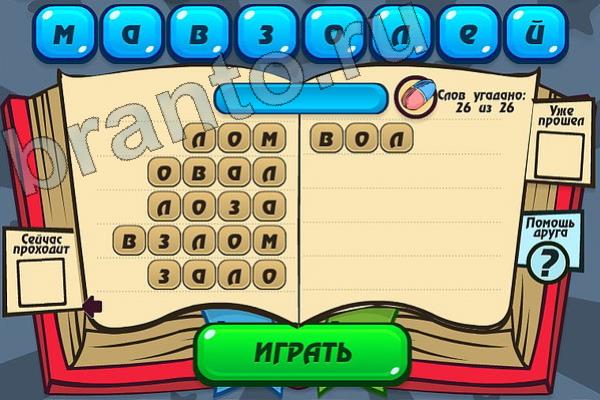 Какие 26 слов можно составить из слова "МАВЗОЛЕЙ"? Мастер слова: ответ на Уровень 119
