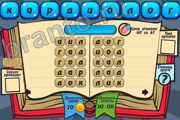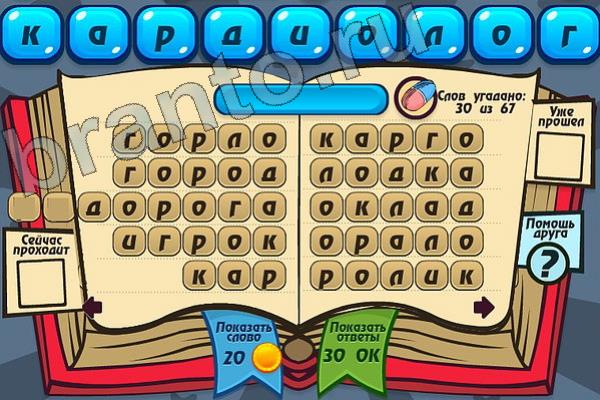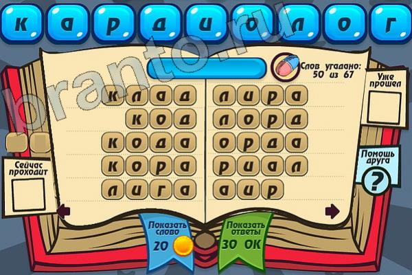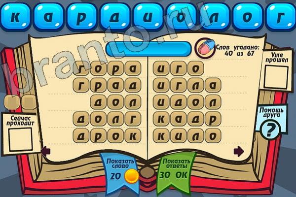 Какие 67 слов можно составить из слова "КАРДИОЛОГ"? Мастер слова: ответ на Уровень 92