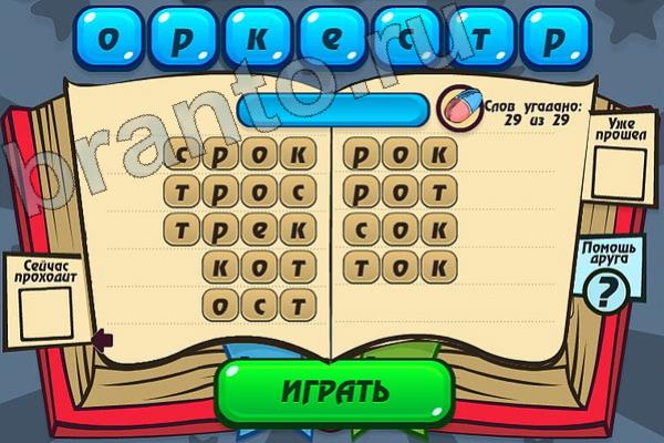 Какие 29 слов можно составить из слова "ОРКЕСТР"? Мастер слова: ответ на Уровень 96