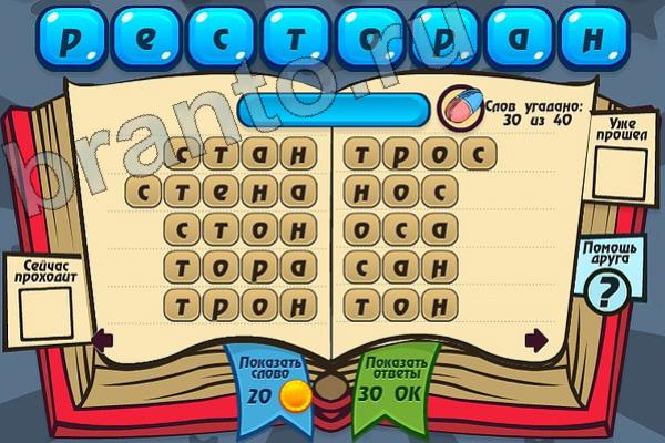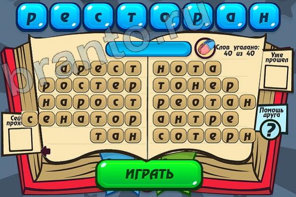 Какие 40 слов можно составить из слова "РЕСТОРАН"? Мастер слова: ответ на Уровень 98