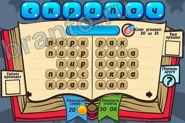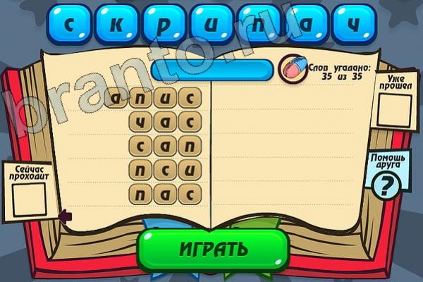 Какие 35 слов можно составить из слова "СКРИПАЧ"? Мастер слова: ответ на Уровень 100