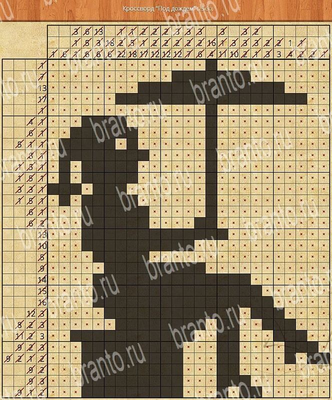 Игра "Японские кроссворды" выпуск №12 - ответы: Под дождемПоле 25*30 клеток.
