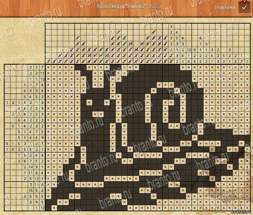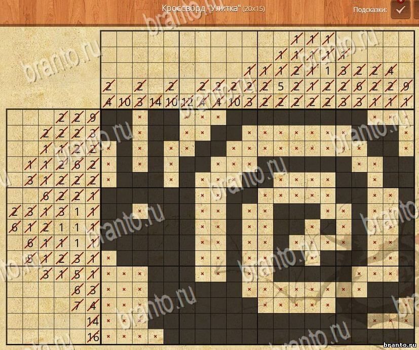 Ответы на игру "Японские кроссворды" - ежедневный бонус: Улитка