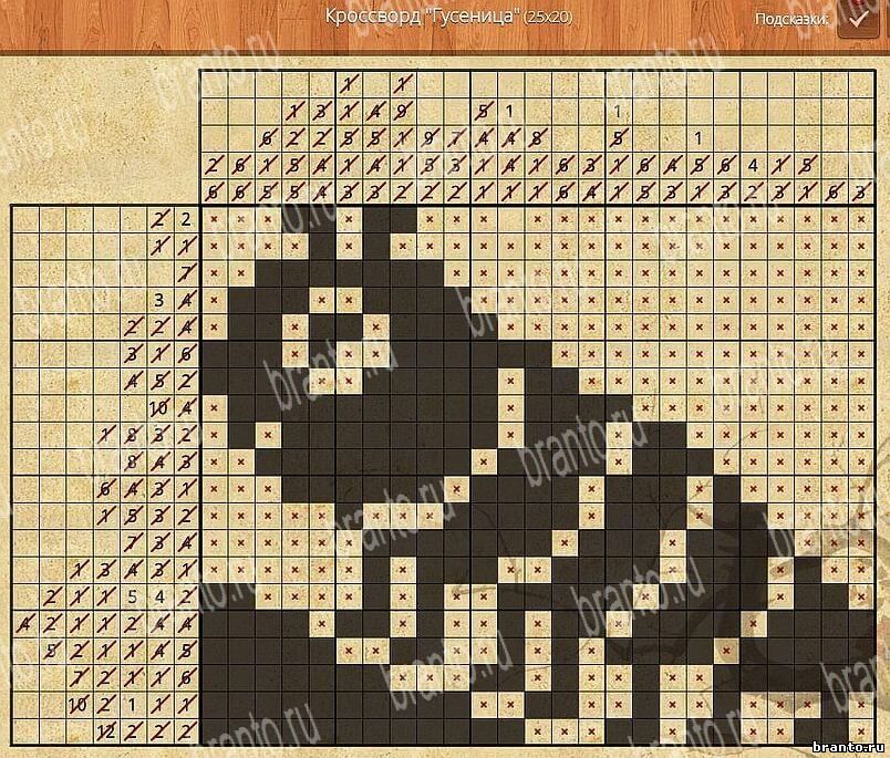 Ответы на игру "Японские кроссворды" - ежедневный бонус: Гусеница
