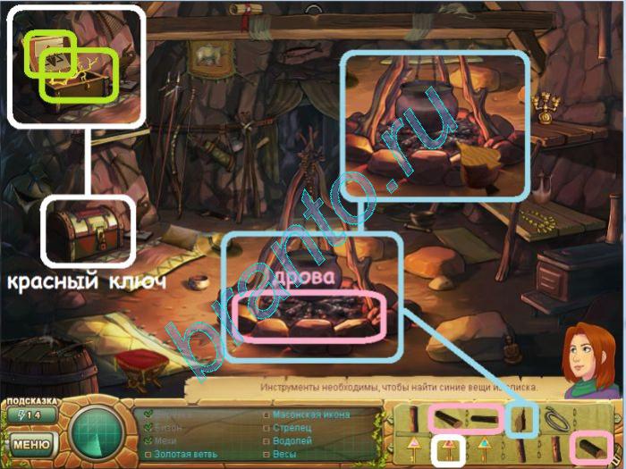 Красным ключом откройте сундук и заберите из него золотую ветвь и Масонскую икону.