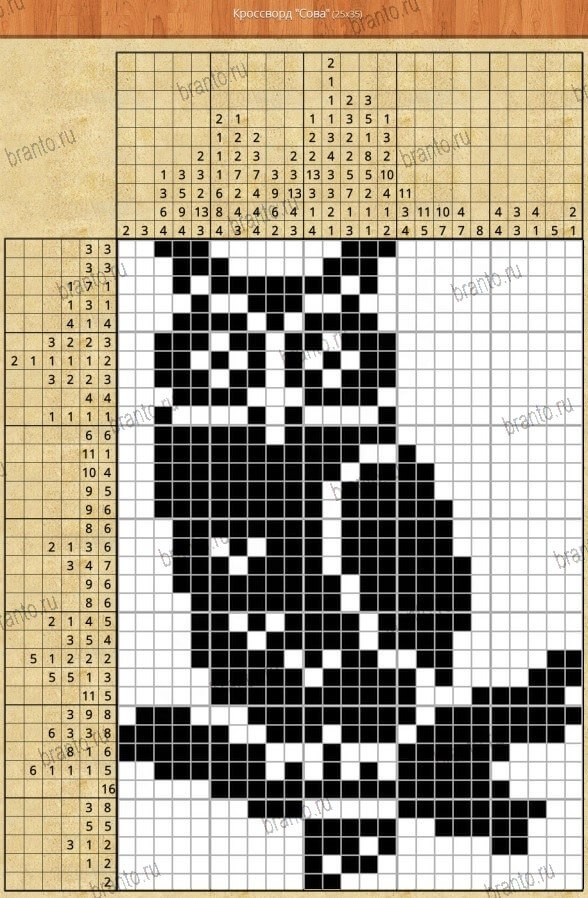 Ответы на игру "Японские кроссворды" - ежедневный бонус #540: Сова