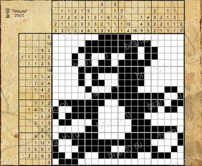 Ответы на игру "Японские кроссворды" - ежедневный бонус #491: Мишка
